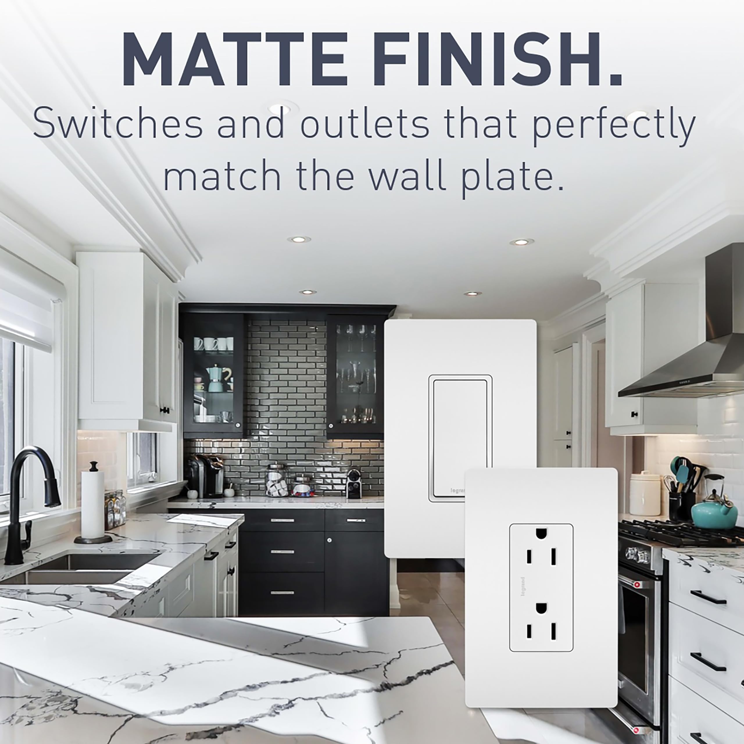 • Included – 1 Legrand – Pass & Seymour Radiant white rocker light switch, 15 amps, 3 way light switch
