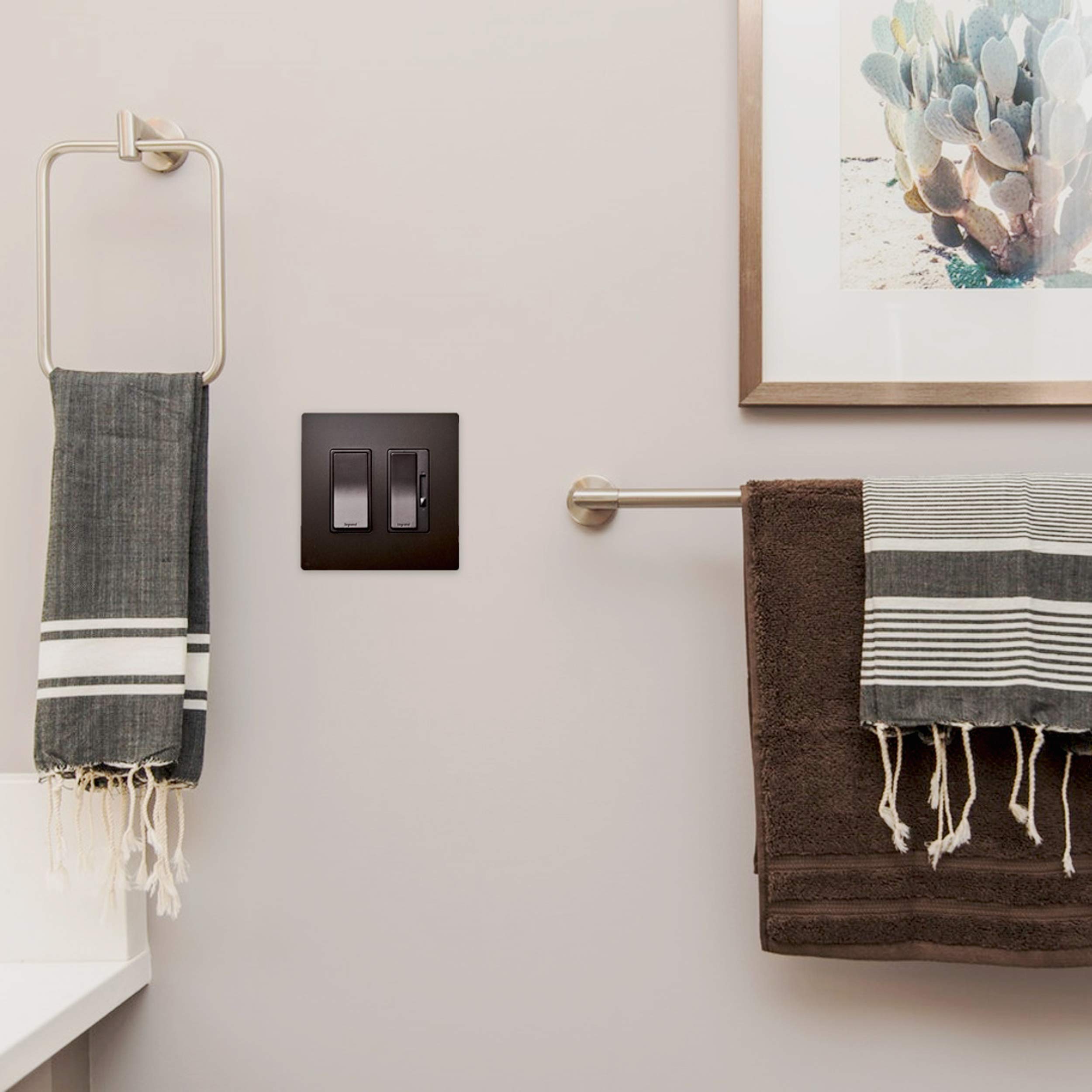 - Included – 1 Legrand – Pass & Seymour Radiant dark bronze rocker light switch, 15 amps, 4 way light switch