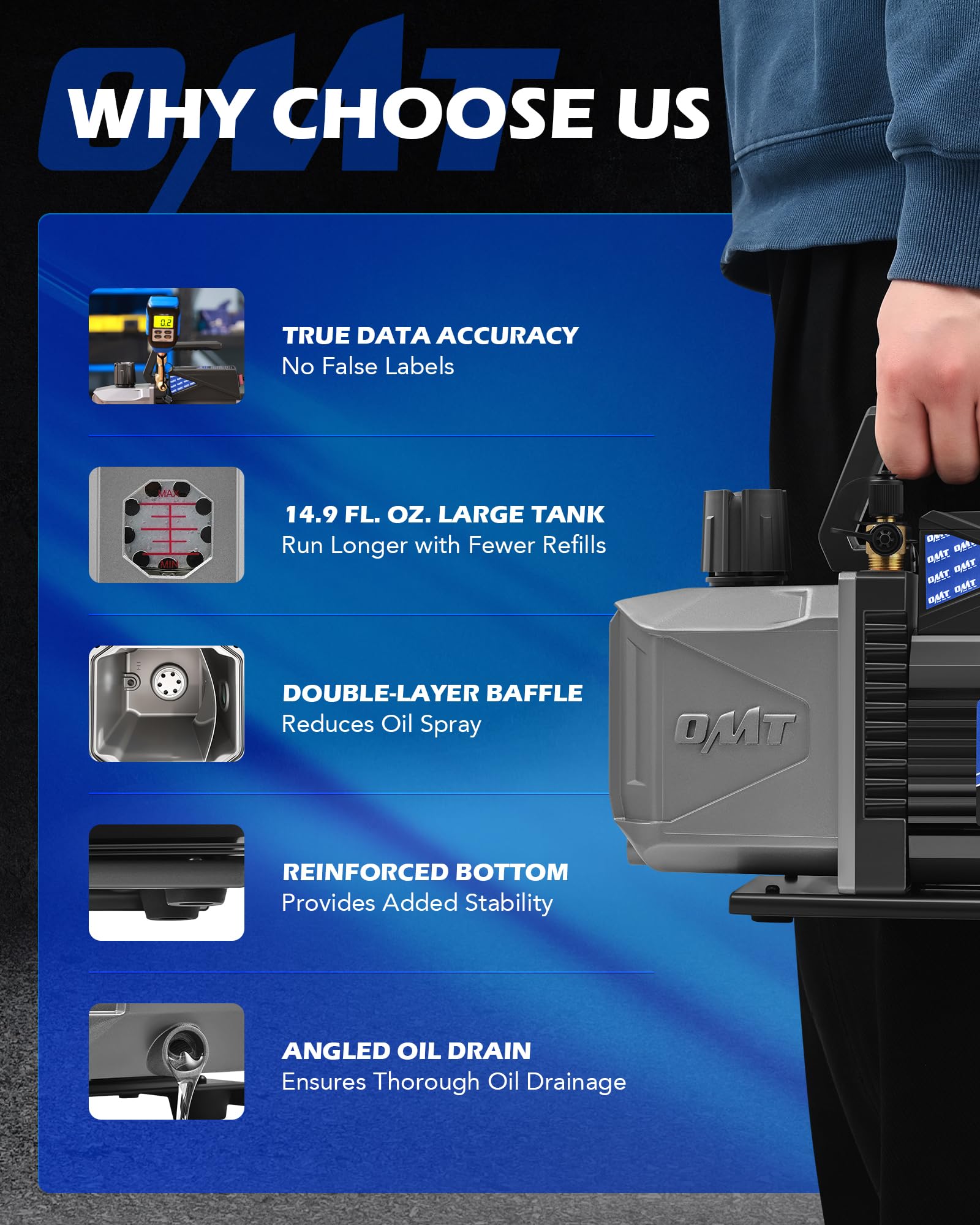 - Minimized Oil Mist and Noise: With its oil mist-free cap on the combined oil fill/exhaust port, our a/c vacuum pump reduces oil mist for a cleaner and safer work environment. It also runs at or below 70 dB, ensuring a quieter & more comfortable workspace