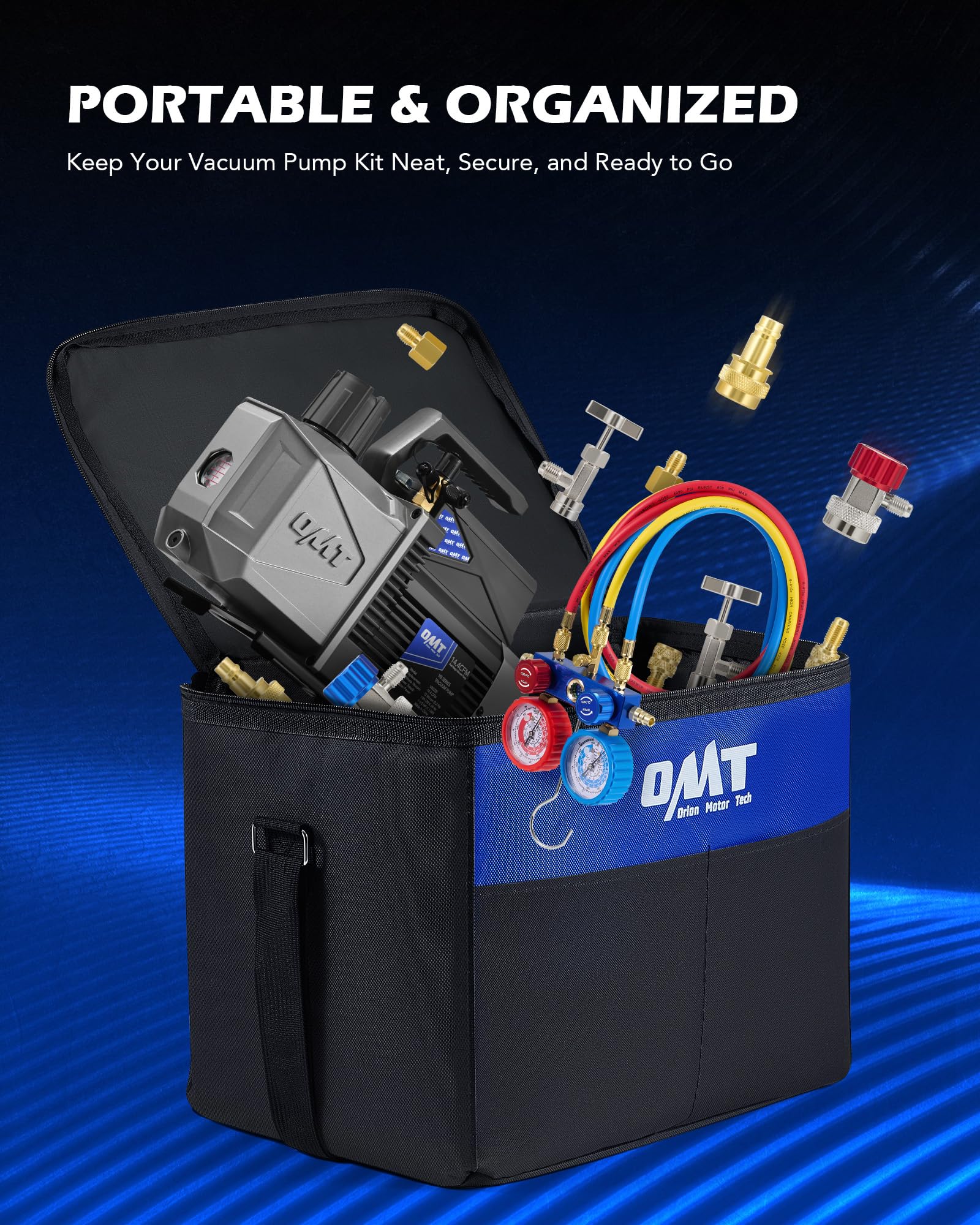 - Versatile Applications: Compatible with R410A, R134a, R32, and R1234yf, this HVAC vacuum pump kit is perfect for automotive repairs, household AC maintenance, DIY projects, and more. The durable bag keeps everything organized for easy storage and transport