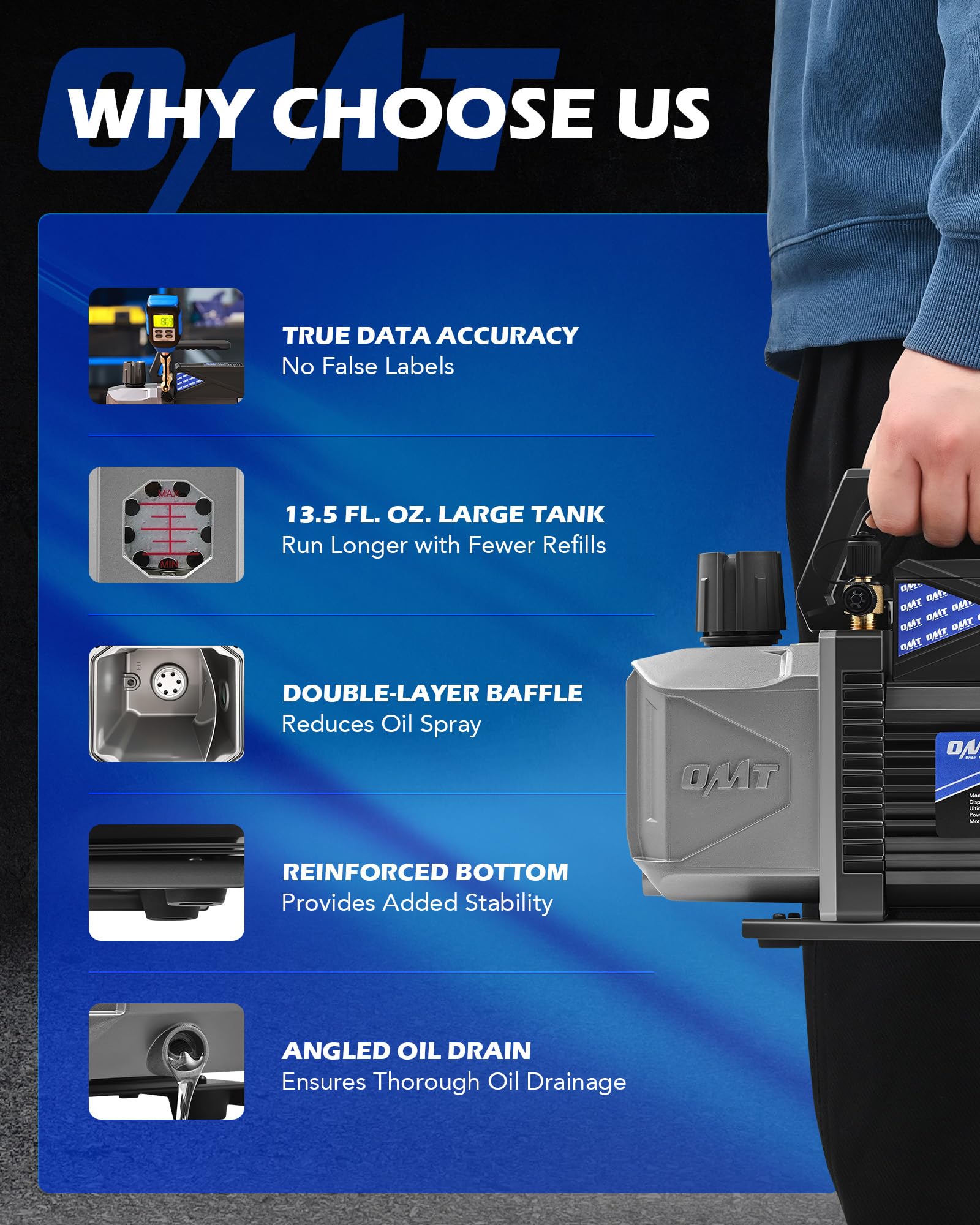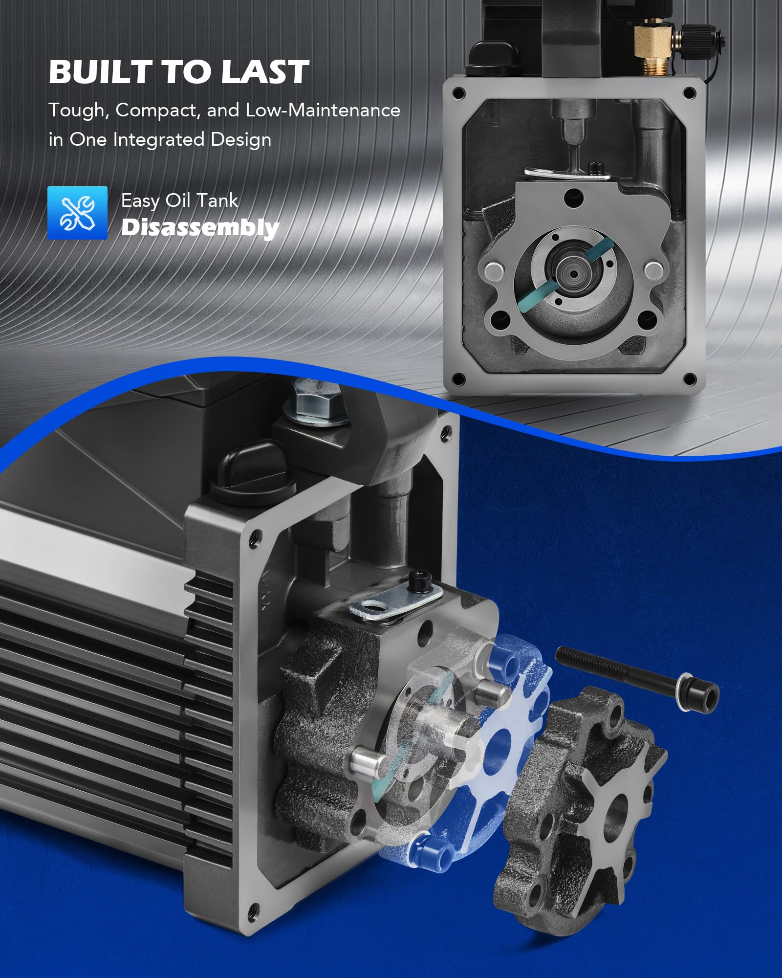 - Minimized Oil Mist and Noise: With its oil mist-free cap on the combined oil fill/exhaust port, our a/c vacuum pump reduces oil mist for a cleaner and safer work environment. It also runs at or below 70 dB, ensuring a quieter & more comfortable workspace