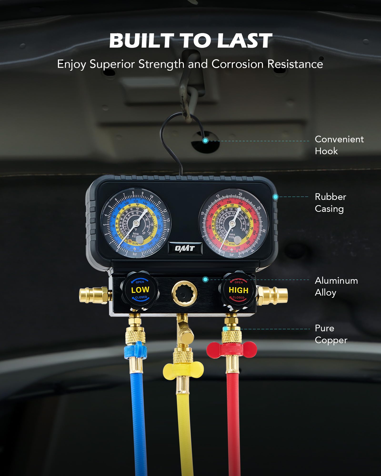 • Enjoy for Years: This manifold gauge set is made with a durable aluminum body and features pure copper fittings for long-lasting use and effective rust and corrosion resistance