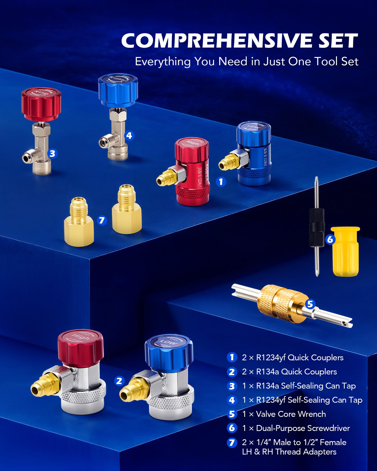 - Wide Application: This air conditioning line repair tool works with R1234yf, R404a, and R134a refrigerants; ideal for HVAC maintenance, this R1234yf AC recharge kit allows you to measure pressure, evacuate and refill coolant
