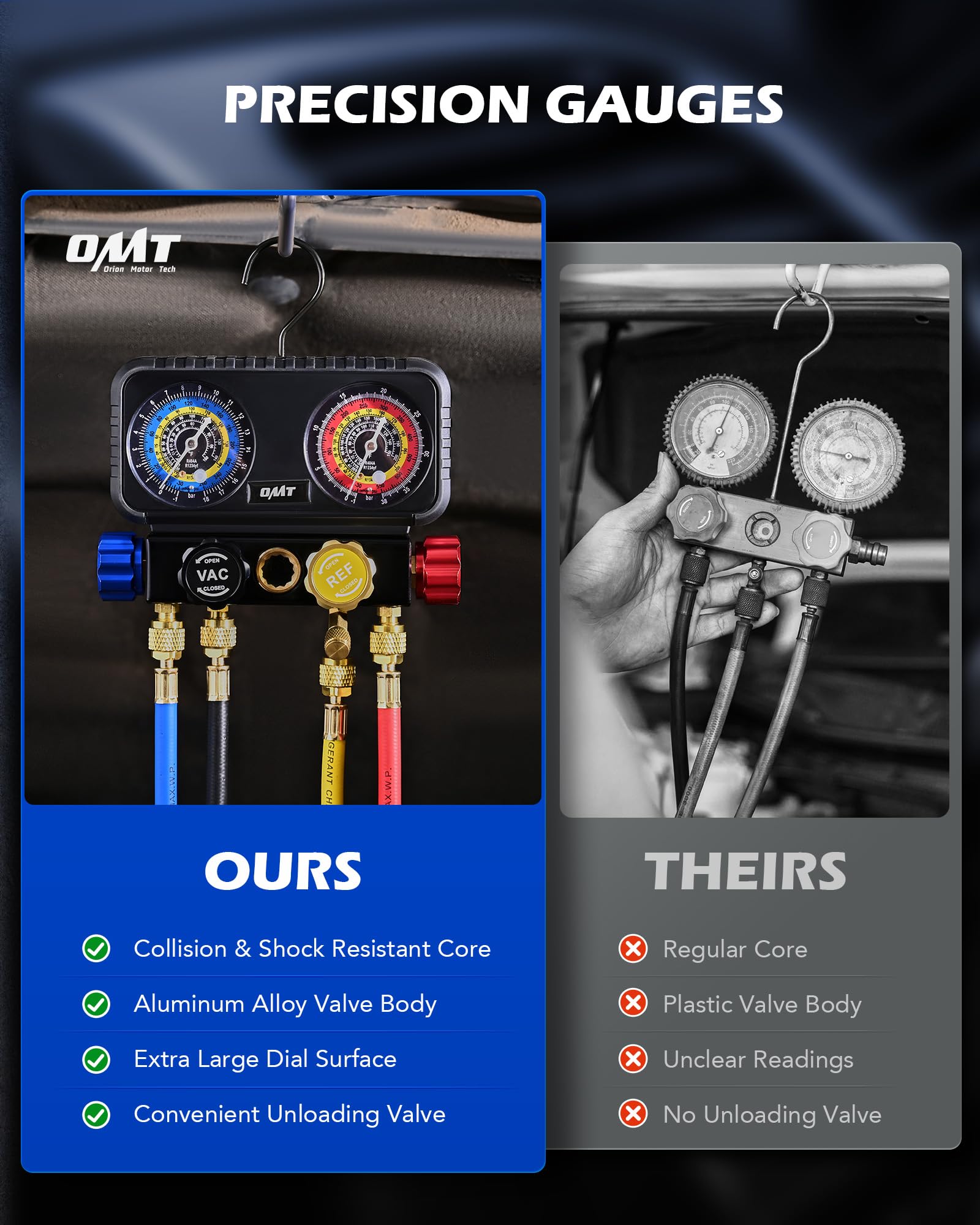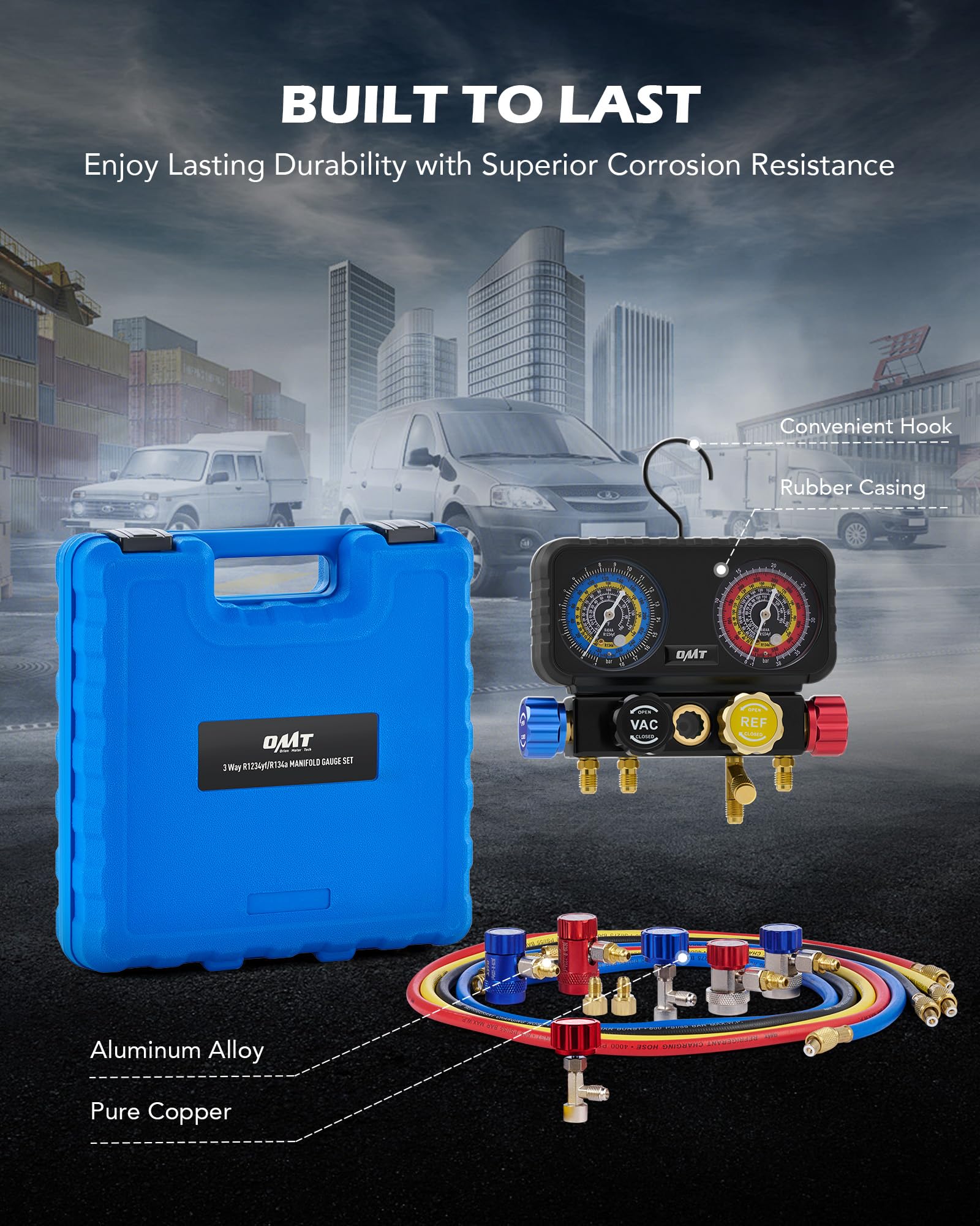 - Enjoy for Years: This manifold gauge set is made with a durable aluminum body and features pure copper fittings for long-lasting use and effective rust resistance