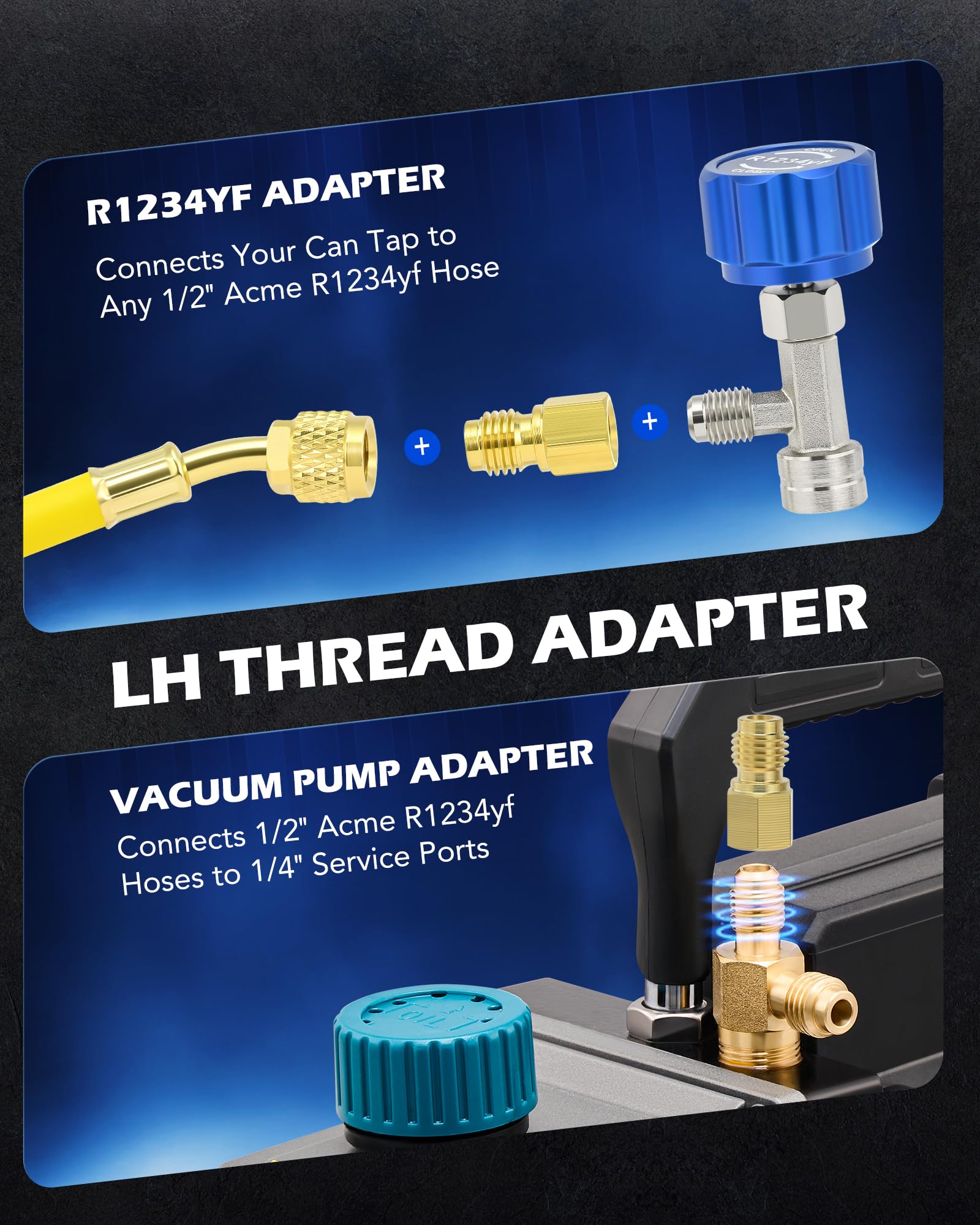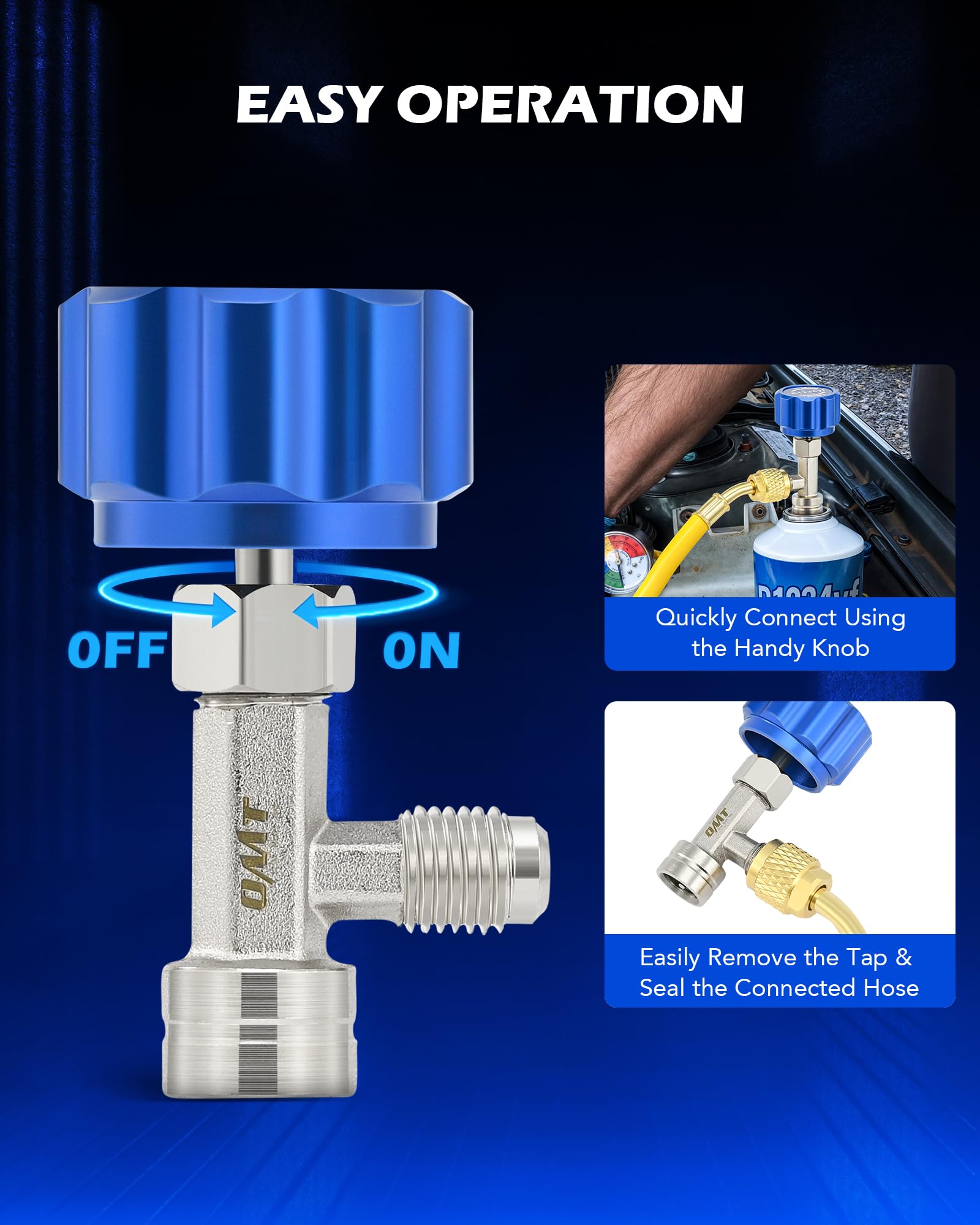 - FREE HOSE ADAPTER: This R1234yf tap valve also comes with a 1/4 inch female to 1/2 inch male adapter to work with most standard HVAC hoses for auto air conditioning systems and vacuum pump kits