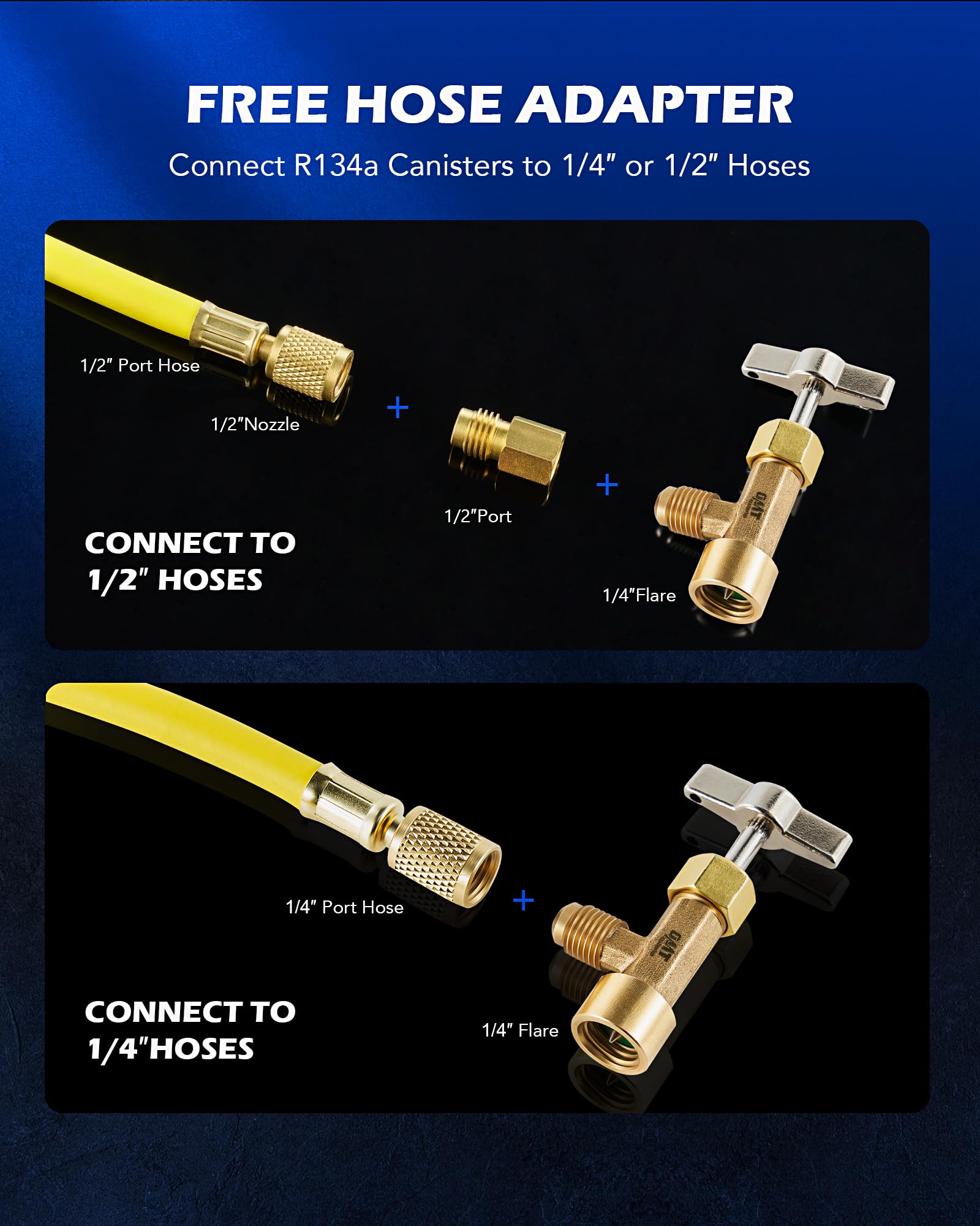 • SATISFACTION GUARANTEED: Order this R134a can tap set with your peace of mind assured by our strong 1-year warranty and usual friendly 24/7 customer service!
