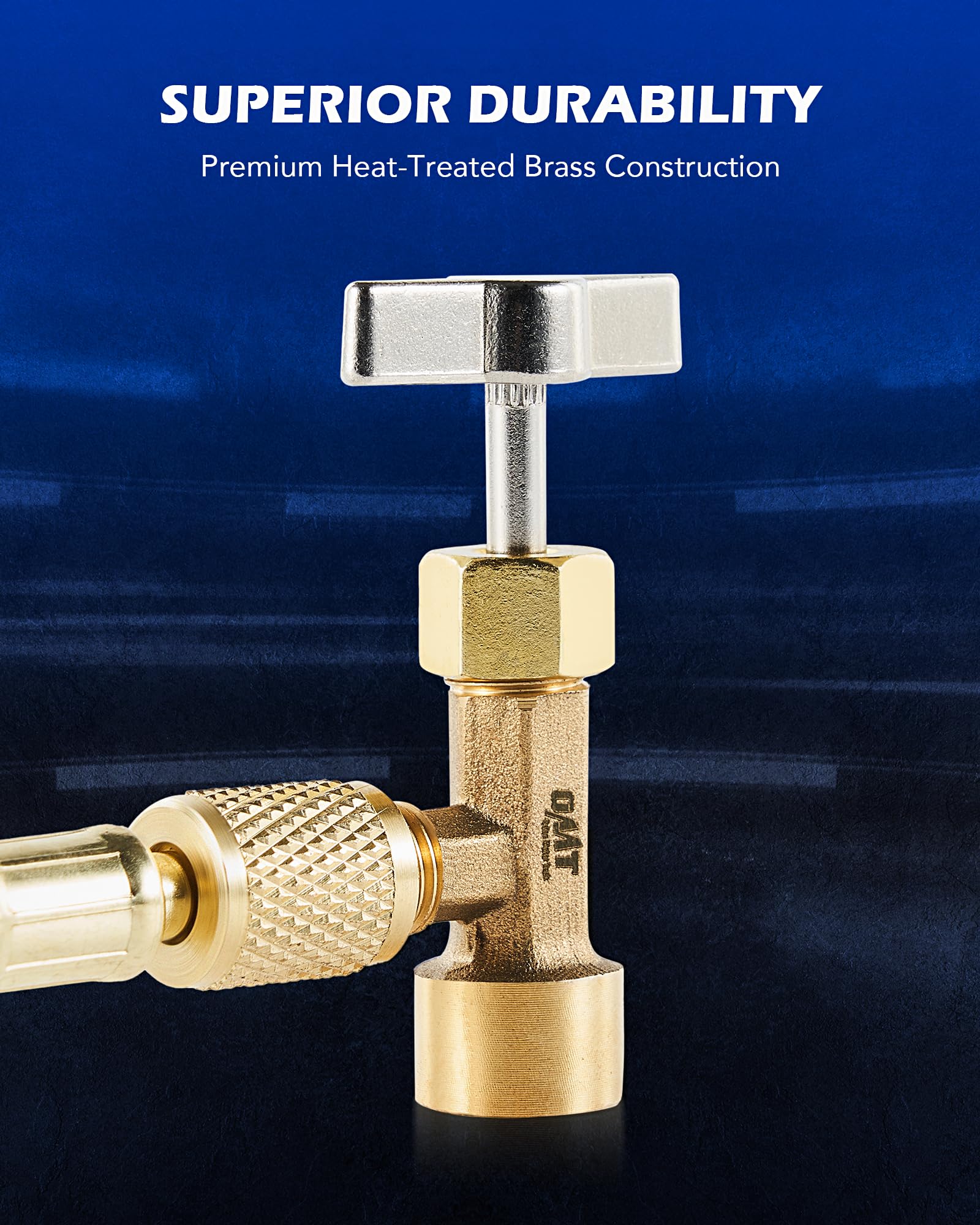 • DURABLE CONSTRUCTION: Both our refrigerant dispenser and hose adapter are crafted from high-quality heat-treated brass for superior strength, corrosion resistance, and longevity