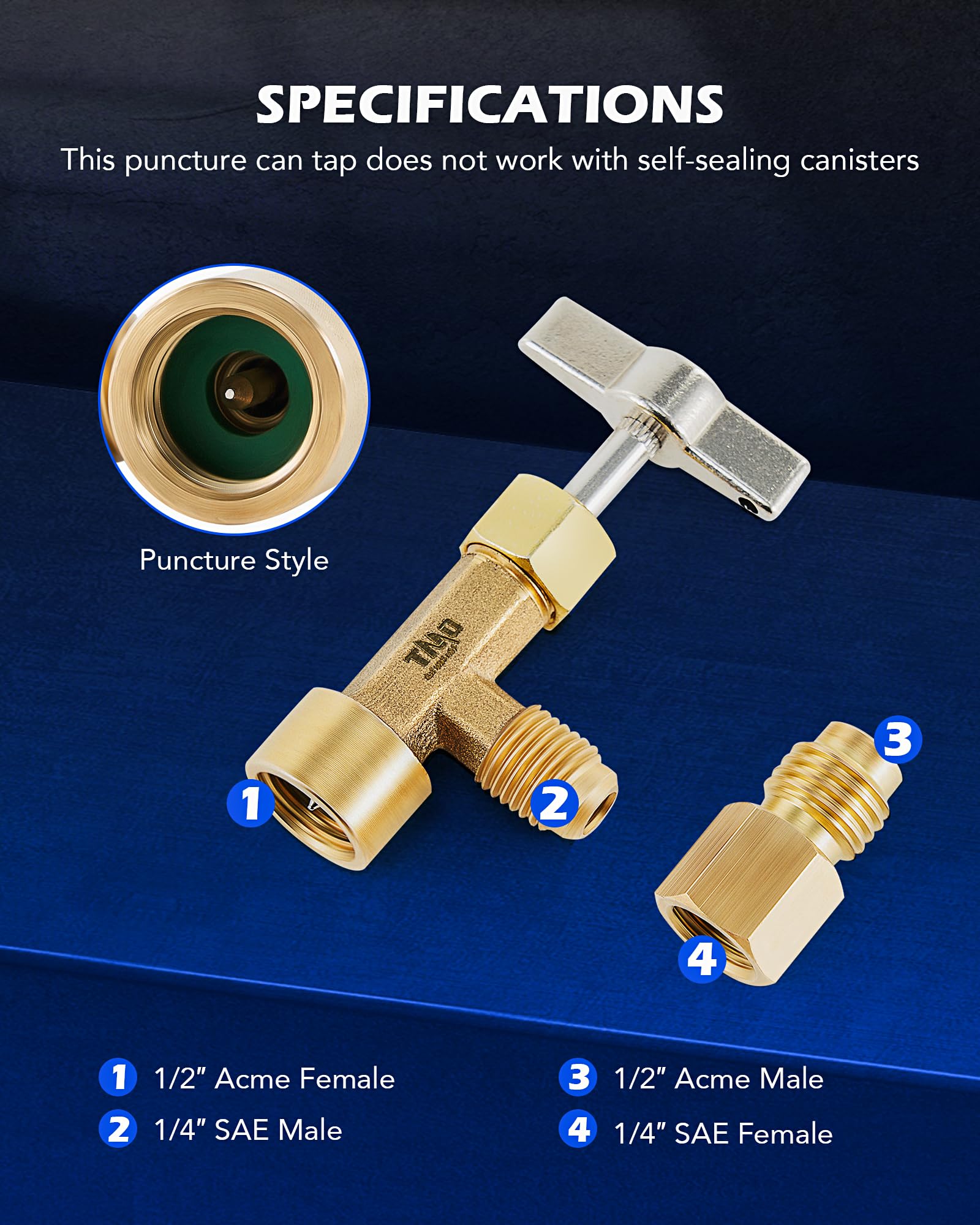 Orion Motor Tech R134a Can Tap, Puncture Style R134a Refrigerant Dispenser with Tank Adapter for 1/4″ and 1/2″ AC Charging Hoses for Refilling Automotive Truck SUV and Other Air Conditioning Systems