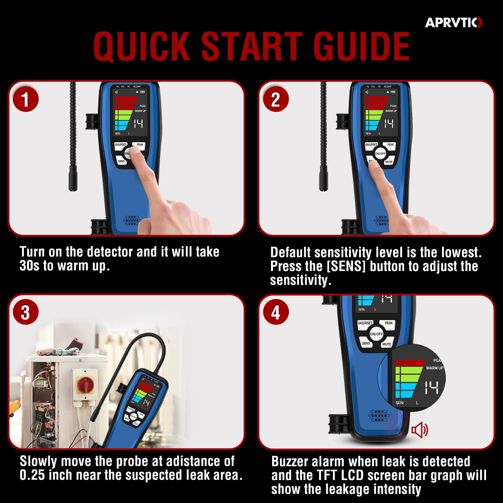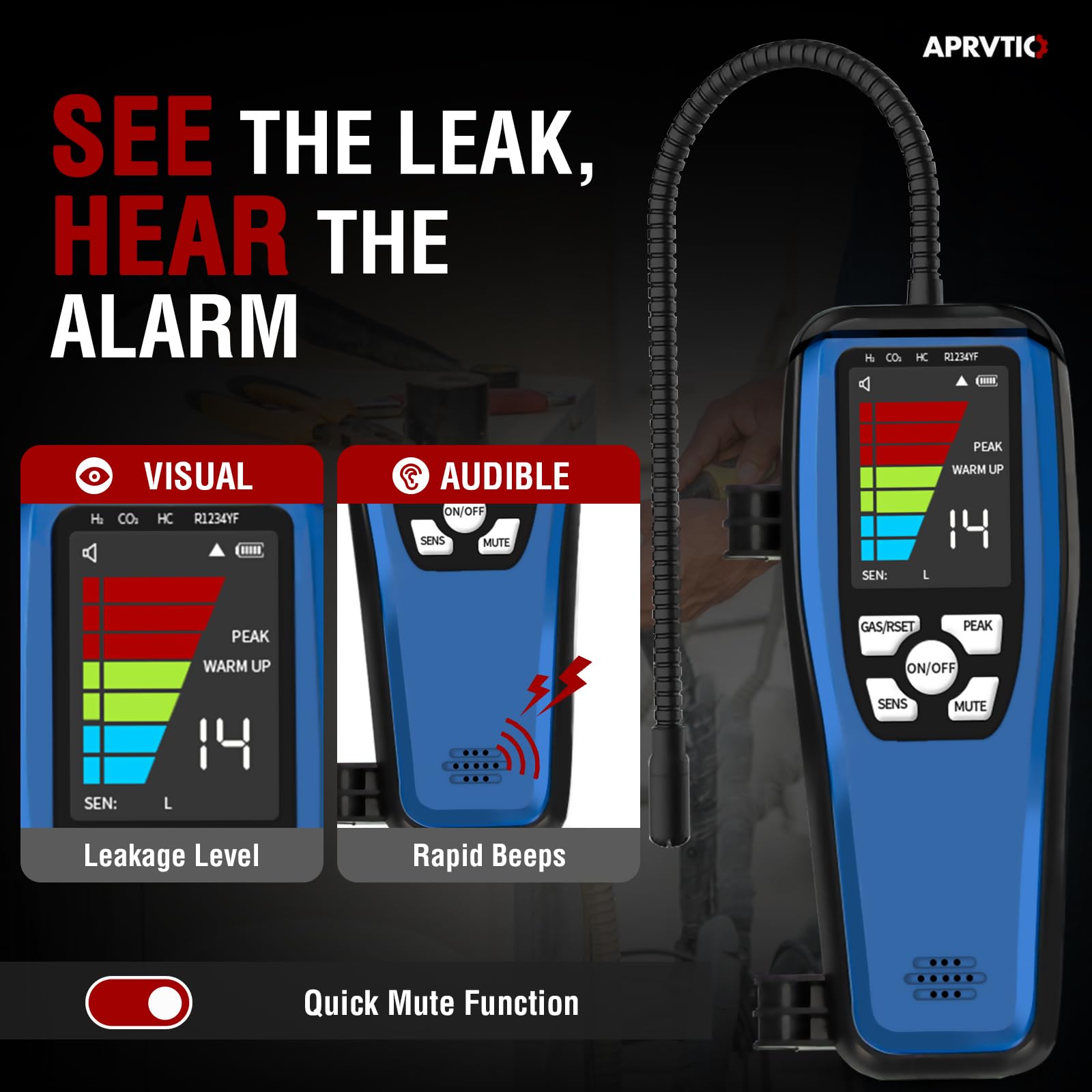 - 【High Sensitivity and Adjustable】This leak detector hvac uses a U.S.-manufactured semiconductor sensor with three adjustable sensitivity levels (up to 0.14 oz./yr.) and a 16-inch flexible probe for tight spaces.