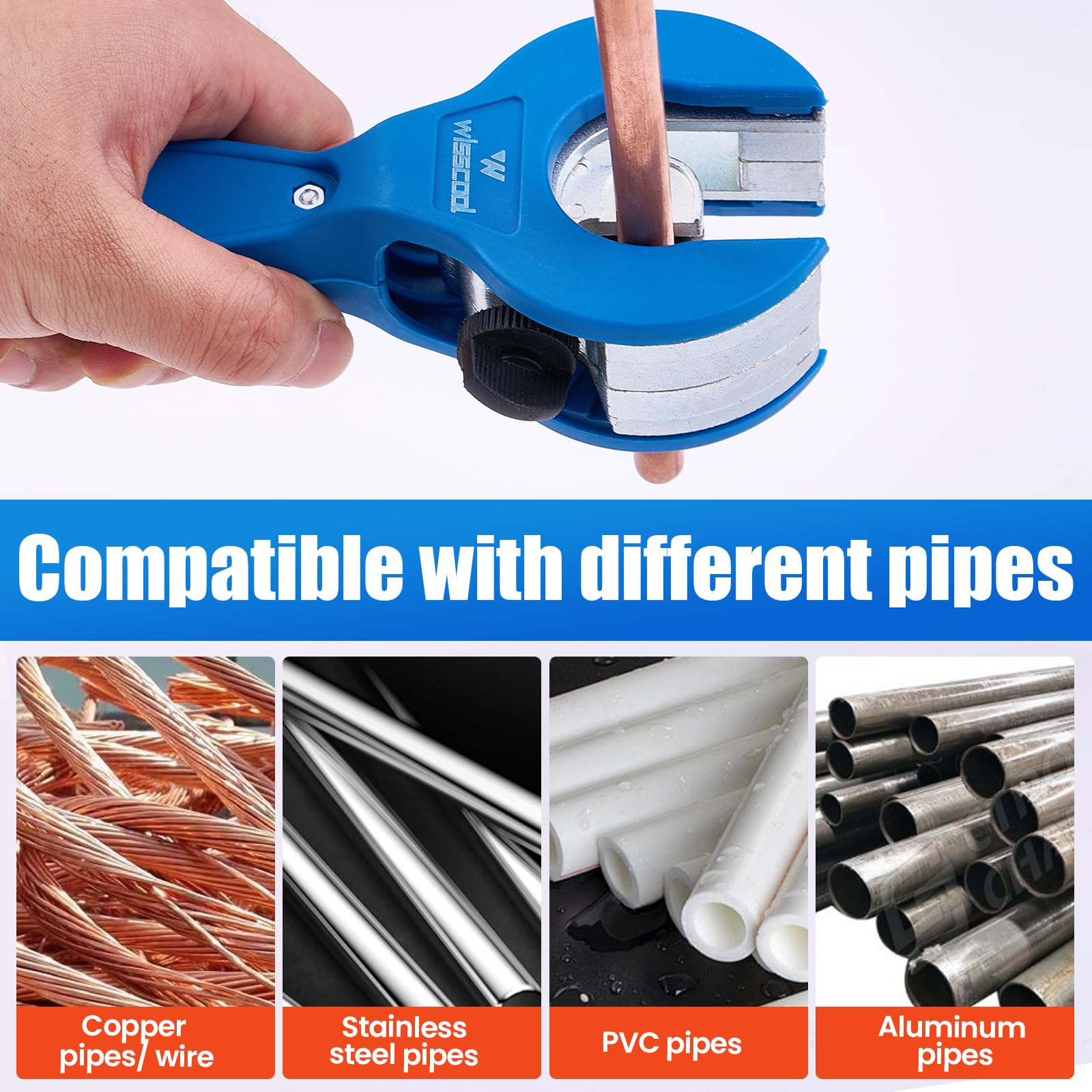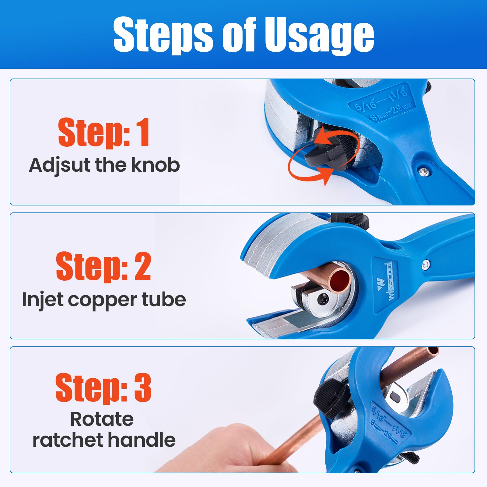 Details: The WISSCOOL Ratcheting Tubing Cutter is a versatile and efficient tool designed to deliver clean, precise cuts on a wide range of tubing materials. With a cutting capacity from 5/16″ to 1-1/8″, this tubing cutter is perfect for copper, aluminum, PVC, and thin-wall pipes, making it an essential tool for HVAC technicians, plumbers, and DIY enthusiasts alike. Its compact 2-in-1 design allows it to function as both a close quarters tube cutter and a ratcheting PVC cutter, ensuring flexibility even in tight spaces where traditional pipe cutters struggle to reach.Engineered with a ratcheting mechanism, this pipe cutter reduces effort and enhances cutting efficiency. The ratcheting tubing cutter design allows you to make smooth, controlled cuts with minimal hand fatigue, which is especially valuable during repetitive tasks or when working with harder materials. The ergonomic grip ensures comfort and stability, while the durable cutting blade guarantees sharp, burr-free cuts for long-lasting performance.Whether you are working on plumbing repairs, HVAC installations, or general maintenance projects, the WISSCOOL ratcheting tubing cutter offers convenience and precision in one compact tool. Easy to use, reliable, and built for professionals, it combines labor-saving and control to deliver consistent results.